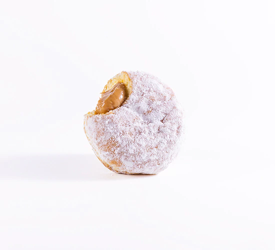 DONUTS COM RECHEIO SABOR DOCE DE LEITE E COBERTURA À BASE DE AÇÚCAR
